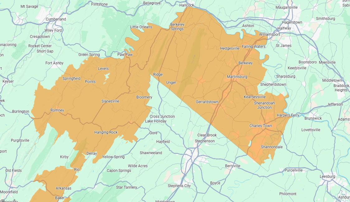 We proudly serve the Eastern Panhandle of West Virginia and surrounding regions in Virginia and Maryland.
